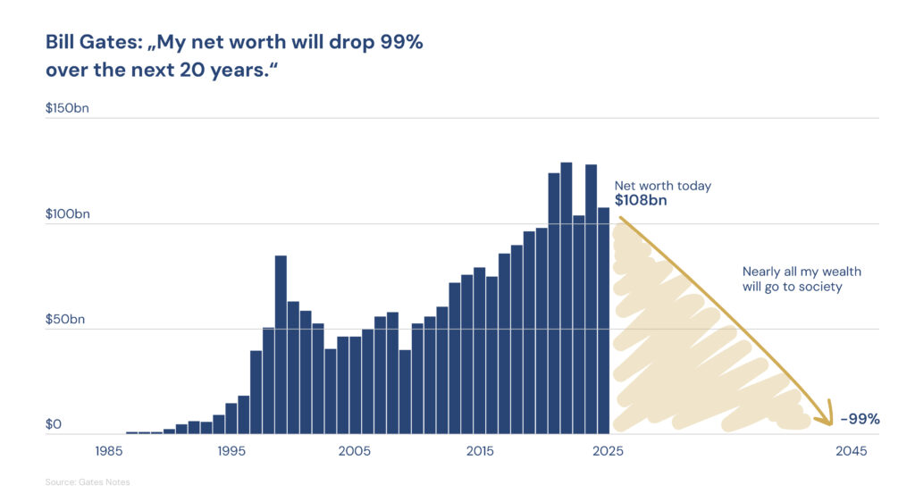 Přesně to dnes dělá Bill Gates. Nejde o to, že by nechtěl, aby jeho peníze pracovaly i po jeho smrti. Jde o to, že si jasně definoval, kdy a jak chce svůj majetek využít, aby to bylo co nejefektivnější.